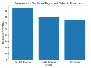 Mount Abu takes pride in its traditional dishes like Dal Bati Churma, Gatte ki Sabzi, and Ker Sangri. These dishes are not just meals but a celebration of the local culture and traditions. The preference for these dishes is evident from our survey, as shown in the graph below.