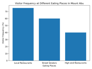 The choice of where to eat in Mount Abu varies greatly. While some prefer the homely ambiance of local restaurants, others enjoy the lively atmosphere of street vendors. High-end restaurants also offer a more sophisticated dining experience. Our research shows the visitor frequency at these different eating places.